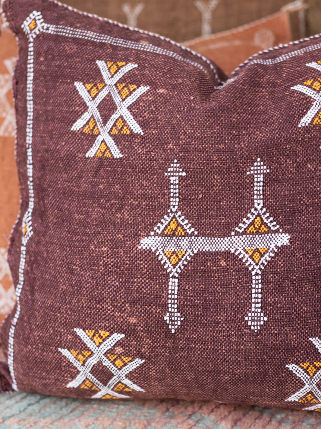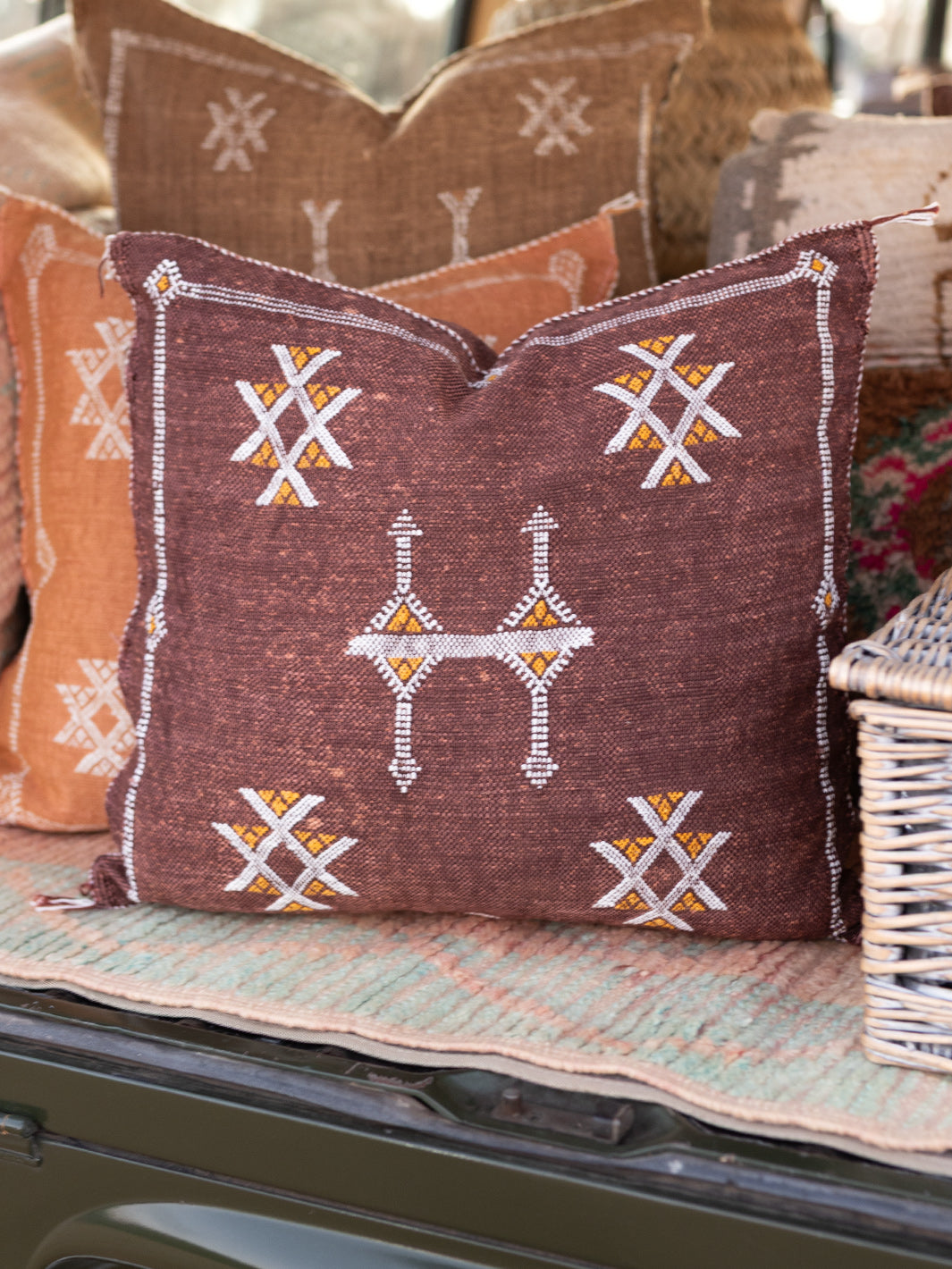 Each cactus silk cushion cover is made by hand on a traditional wooden loom, then individually faded to perfection under the Moroccan sun, giving a gorgeous tonal detail and depth to every piece.