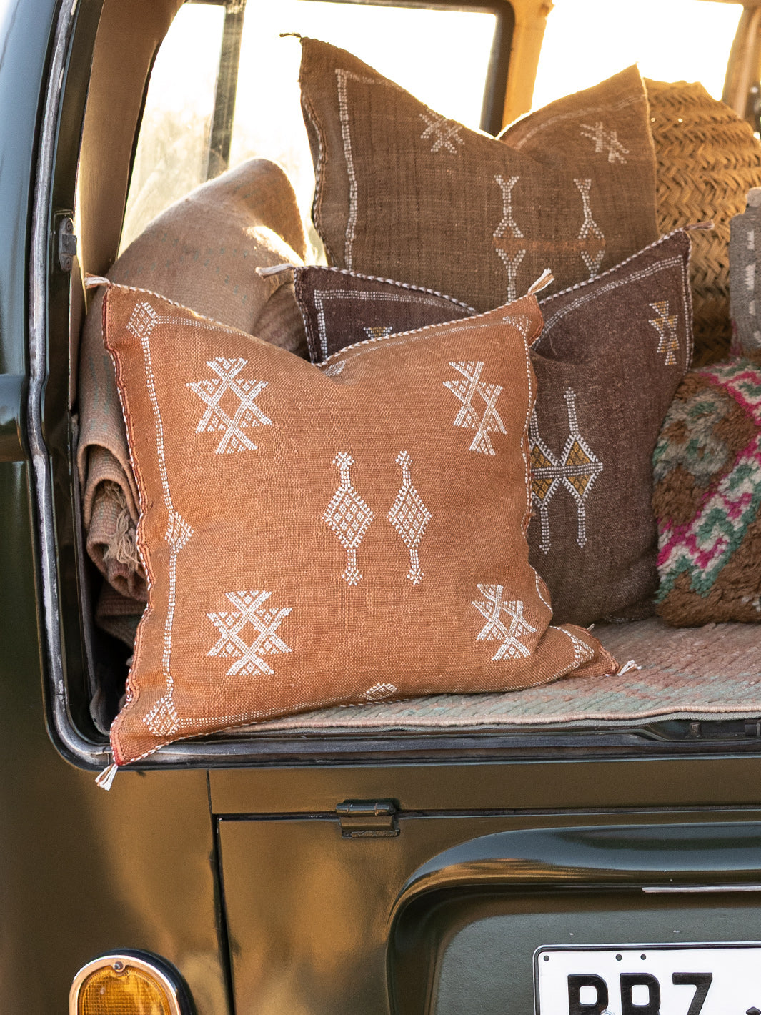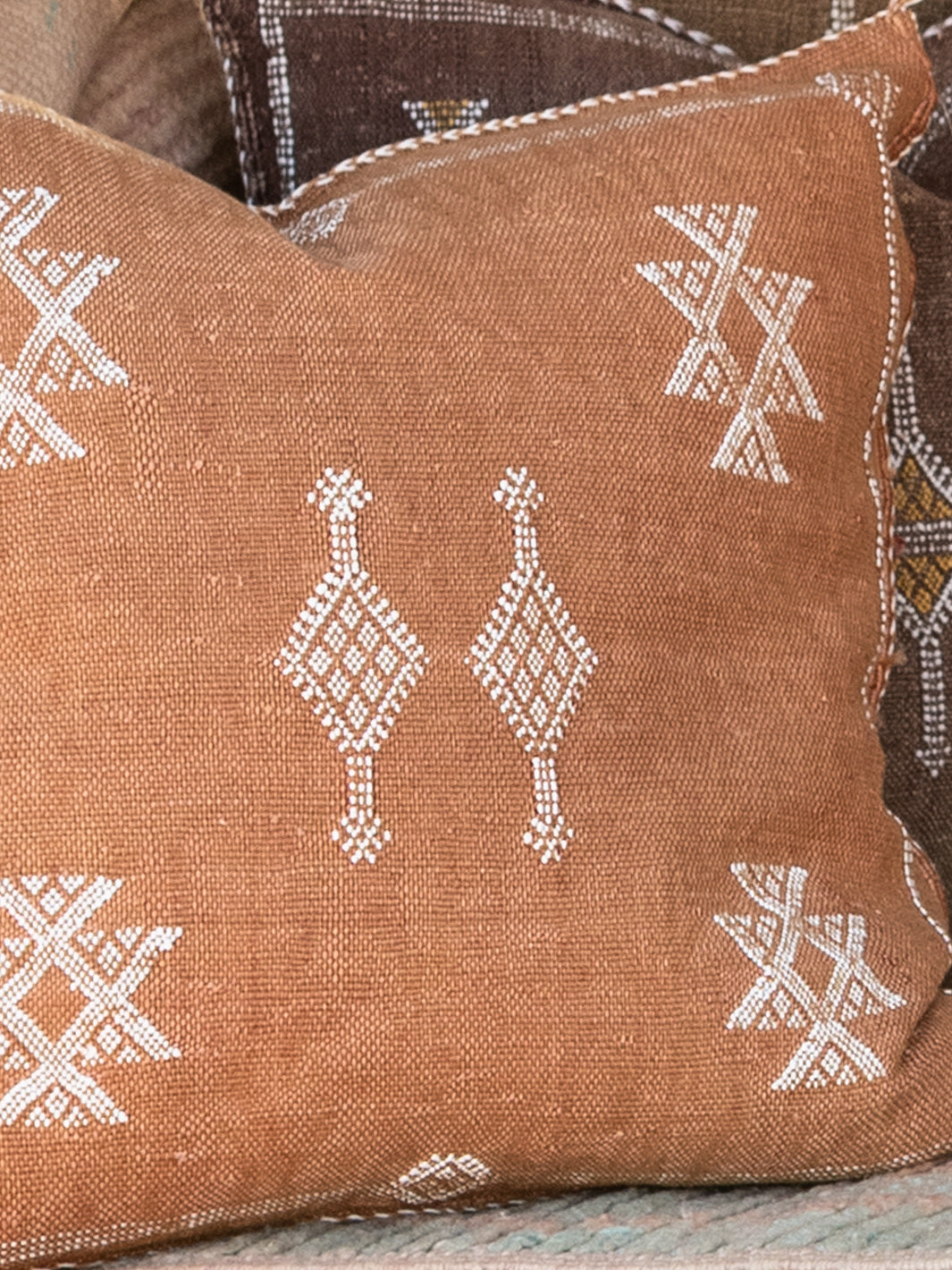 Each cactus silk cushion cover is made by hand on a traditional wooden loom, then individually faded to perfection under the Moroccan sun, giving a gorgeous tonal detail and depth to every piece.