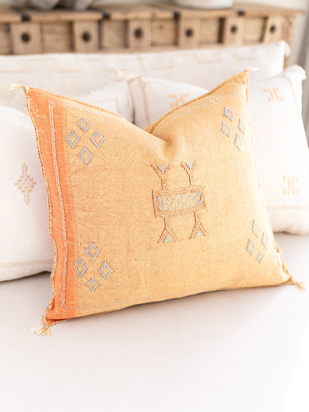 Each cactus silk cushion cover is slow made on a traditional wooden loom, then individually faded to perfection under the Moroccan sun, giving a gorgeous tonal detail and depth to every piece.