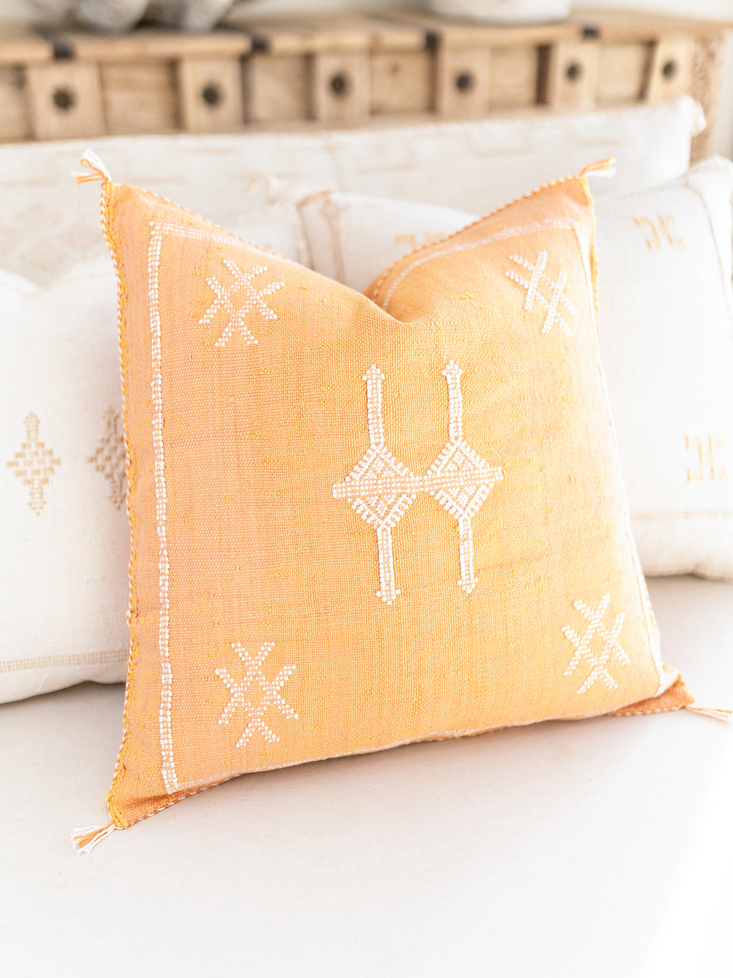 Each cactus silk cushion cover is slow made on a traditional wooden loom, then individually faded to perfection under the Moroccan sun, giving a gorgeous tonal detail and depth to every piece.
