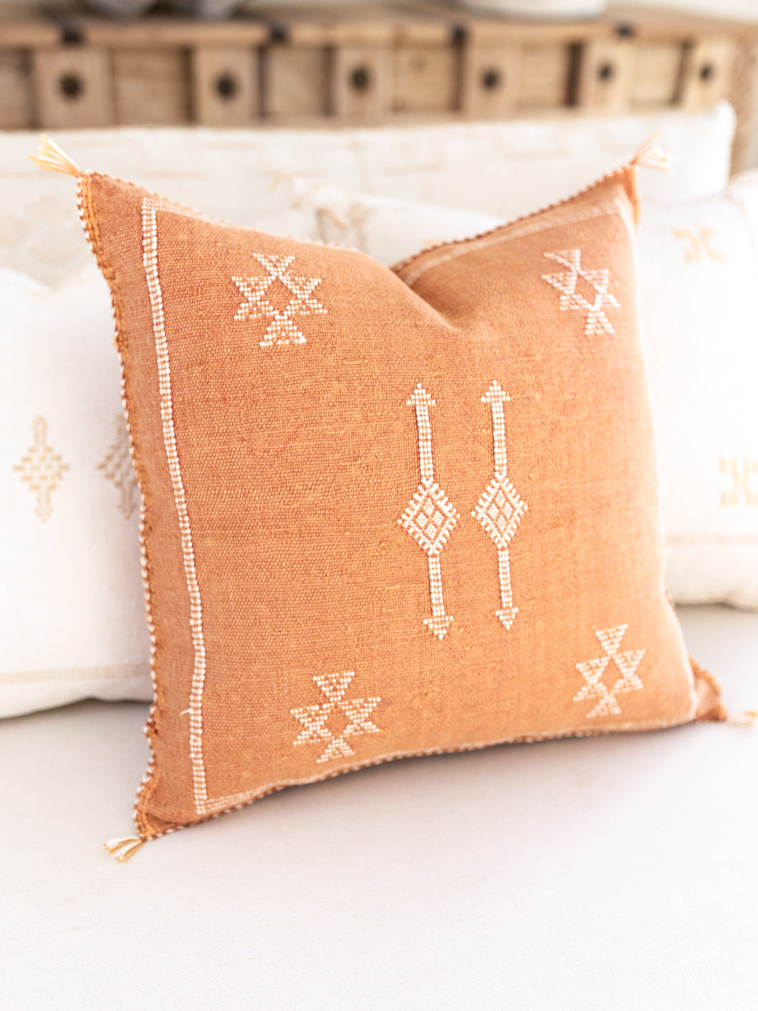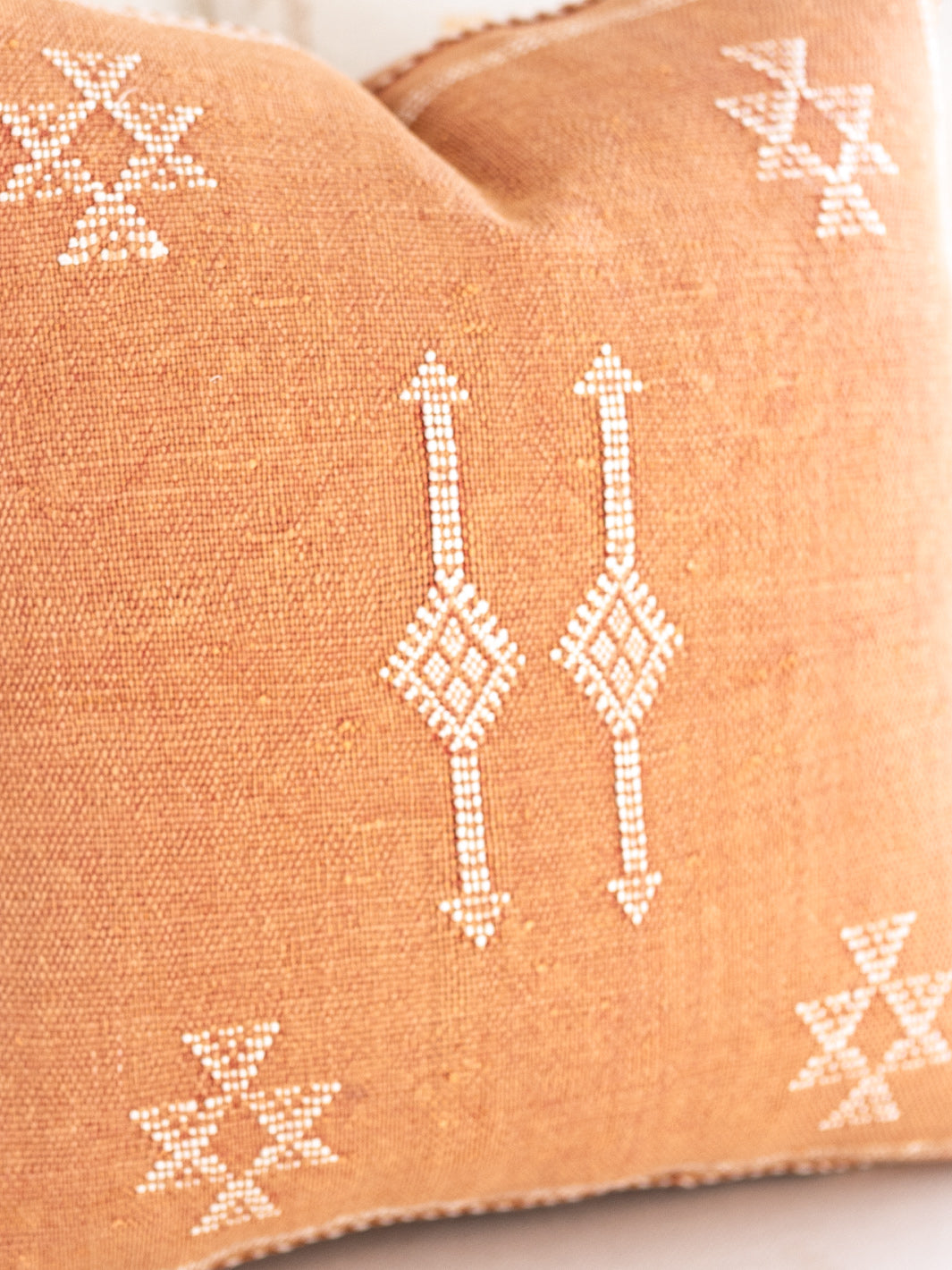 Each cactus silk cushion cover is made by hand on a traditional wooden loom, then individually faded to perfection under the Moroccan sun, giving a gorgeous tonal detail and depth to every piece.