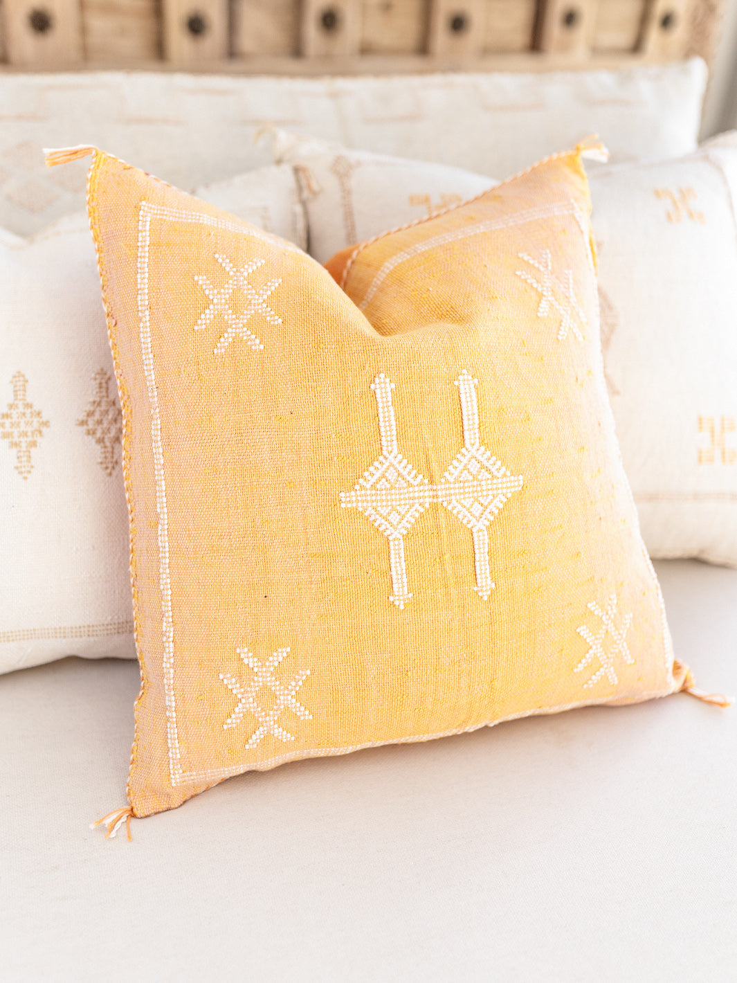 Each cactus silk cushion cover is slow made on a traditional wooden loom, then individually faded to perfection under the Moroccan sun, giving a gorgeous tonal detail and depth to every piece.